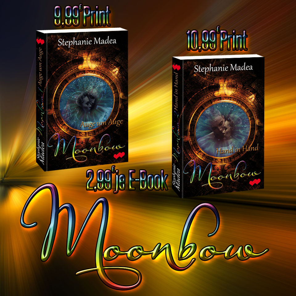 HIER findet ihr meine "Moonbow"-Dilogie komplett bei Amazon. Als E-Book - noch sind die Prints leider nicht mit den E-Books verknüpft, weil noch alte Prints auf Lager liegen.
